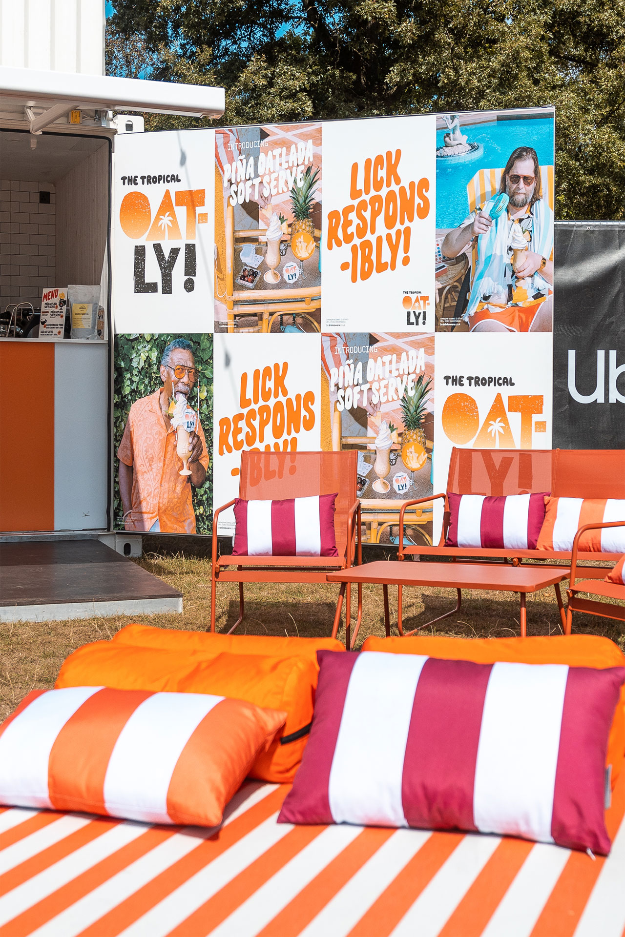 We delivered a festival-first Oatly build: a high-visibility, high-energy coffee and soft-serve bar, staffed by a team chosen for their warmth, energy, and ability to live and breathe the brand. We brought coffee and oat-based treats to thousands of attendees across the event, while keeping everything slick, sustainable, and full of personality.