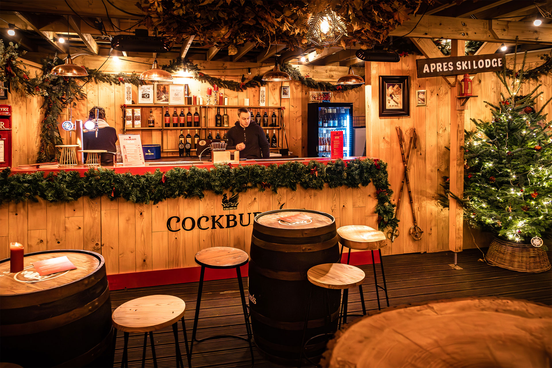 Working alongside The Collab, we were tasked with transforming Between the Bridges into a traditional Alpine lodge for Cockburn’s, creating an inviting, winter-ready space for guests to enjoy. The challenge? Enhance the existing setup to encourage people to stay in the space and experience the brand, and to add warmth, shelter, and alpine-inspired features—while making smart use of existing assets to keep the build sustainable.