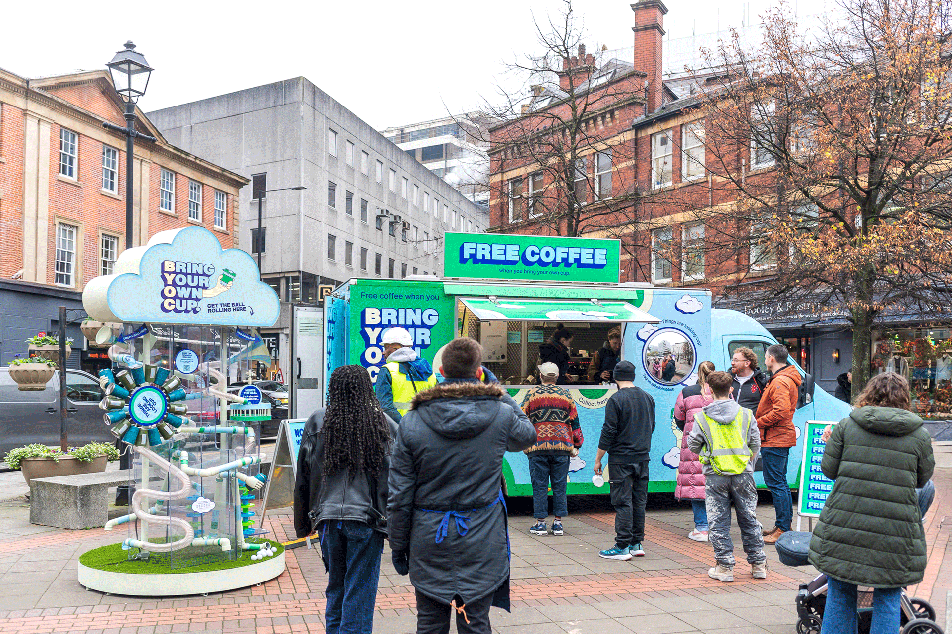 Hubbub came to us with a clear objective, how do you make bringing a reusable cup feel like an unmissable win? Hubbub wanted to inspire 25–34-year-olds to make reusables a daily habit. To move beyond environmental messaging and create a rewarding experience that made people want to remember their cup. The activation needed to be fun, highly shareable, and durable enough to tour four UK cities.