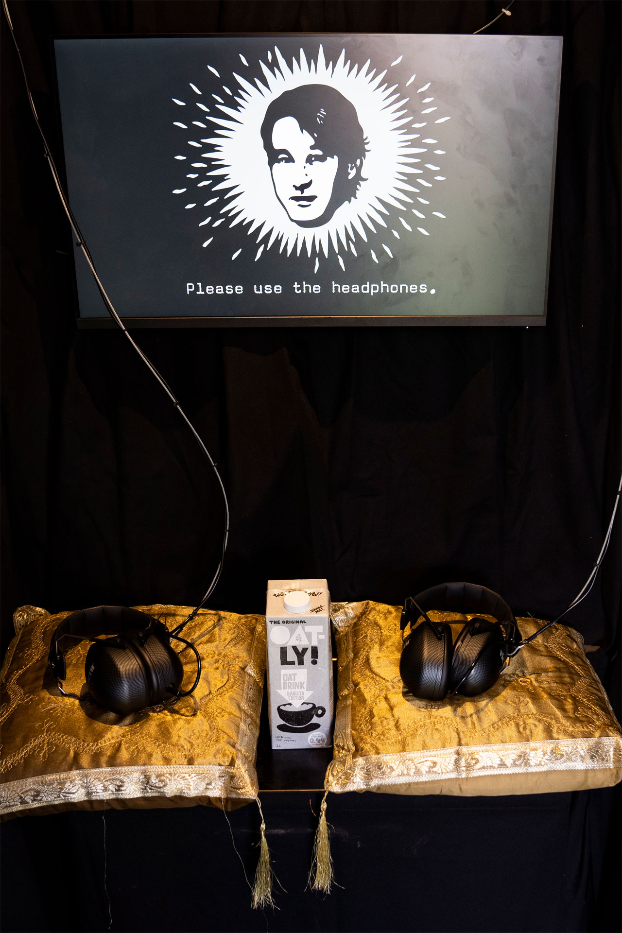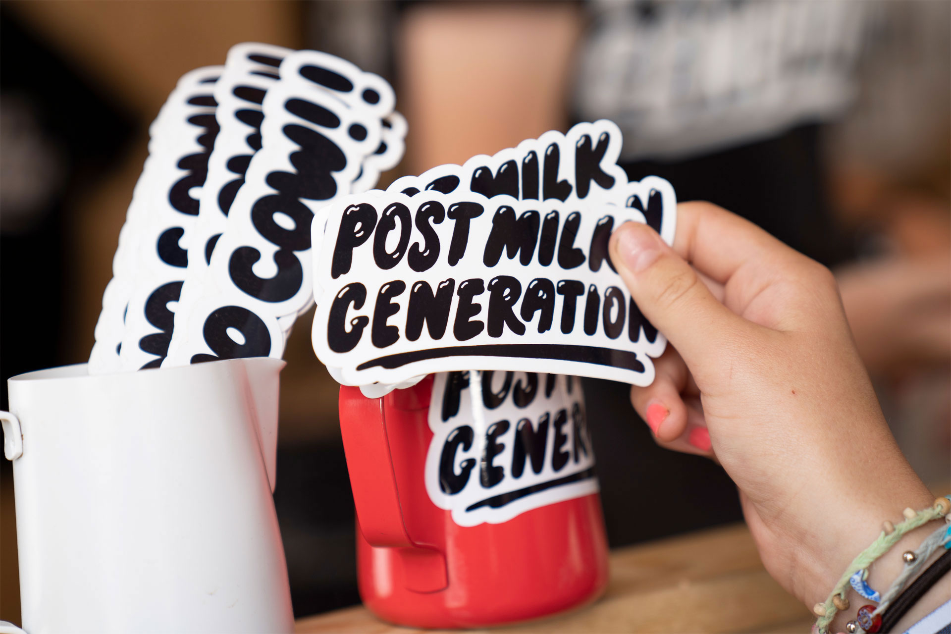 We created an immersive oat-based wonderland: part pledge station, part post-milk hangout. Under a giant stretch tent, visitors were welcomed by bold copy-led signage and a fully branded container bar, where Oatly staff dished out drinks and encouraged people to make the 72-hour switch. We designed a custom-built confession booth–turned–oat awakening chamber. Inside, attendees popped on headphones for a meditative audiovisual journey through the world of Oatly, emerging as full-blown members of the Post Milk Generation. A real-time CO₂ counter ticked away above, measuring the climate impact saved by collective pledges.